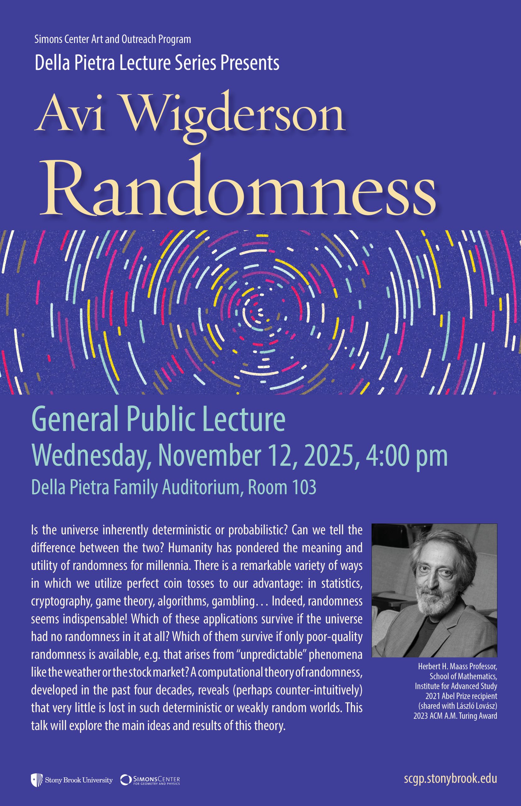 The Della Pietra Lecture Series is pleased to present a series of lectures by Avi Wigderson, Institute for Advanced Study, Princeton All talks will be streamed live at scgp.stonybrook.edu/live Common … Read more