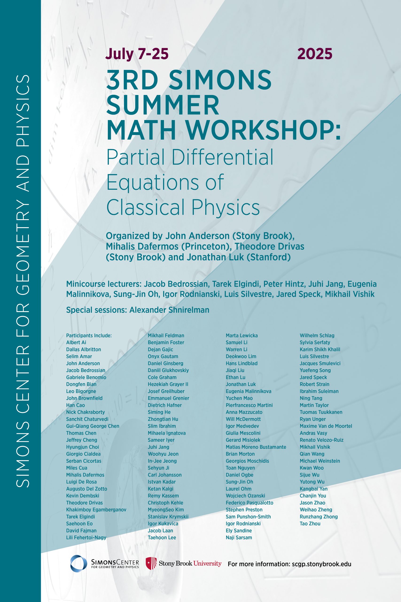 This workshop aims to provide an opportunity for such in depth interactions among mathematicians interested in fundamental questions about PDEs in classical physics. It will feature minicourses by experts which provide answers to such questions, and which provide an introduction to the powerful techniques involved. These minicourses will be geared towards advanced graduate students as well as other established researchers who may specialize in different areas. Each week will feature about three such minicourses.