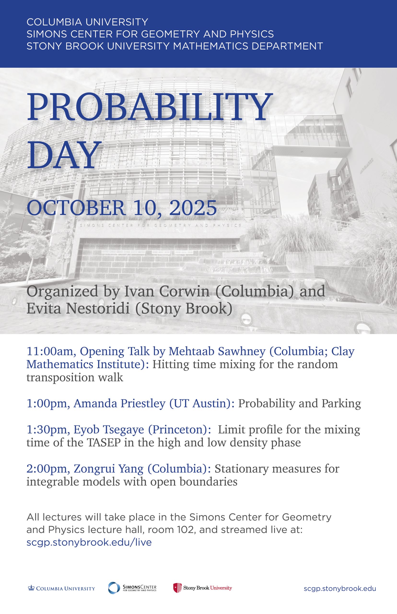 Organized by Ivan Corwin (Columbia) and Evita Nestoridi (Stony Brook)